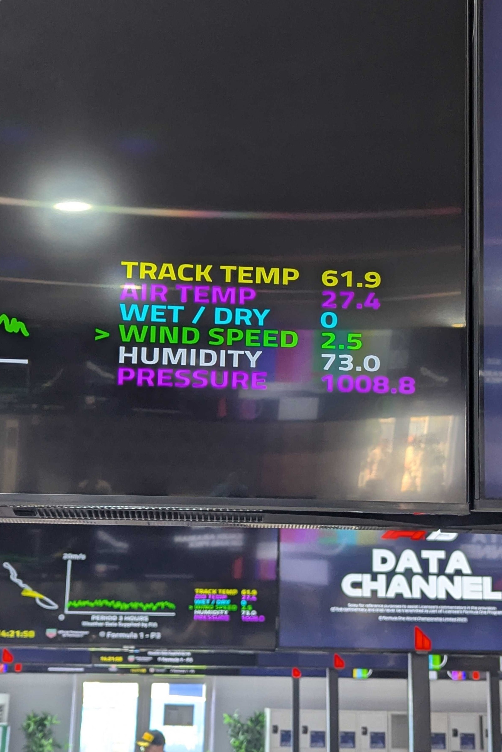 "Lovely track temp," Fil says having sent over this image. Thankfully there's no running today, or we might genuinely have a case where the tyres melt...